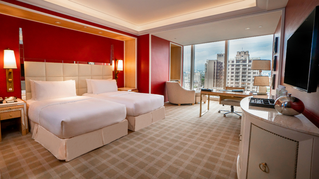 客房空間寬裕,平均坪數 為 15 坪以上,並使用席夢思床具及英國的潘海利根沐浴備品,著重給予旅客舒適的住宿體驗。雙人房每晚約 5000~6000 元。