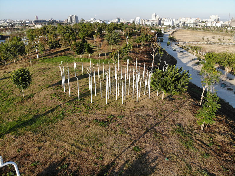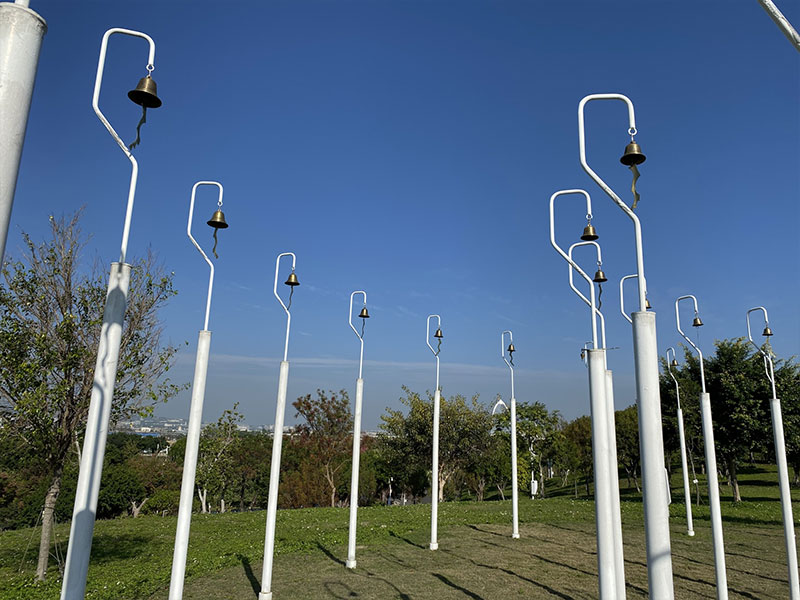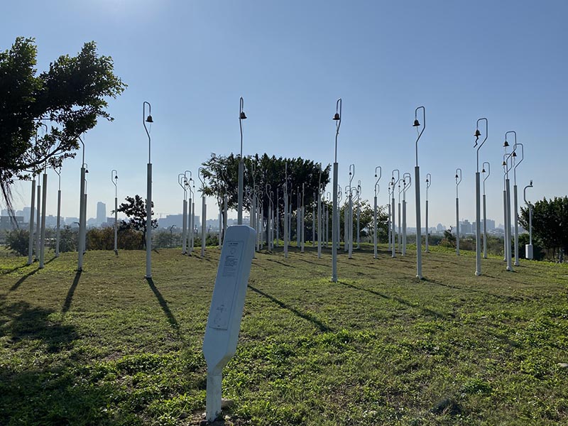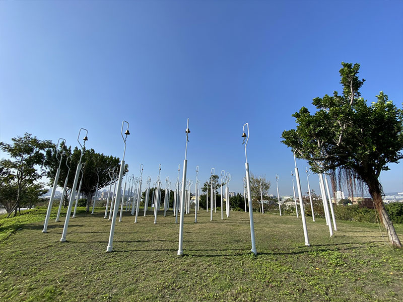於小山丘上,站立著 72 支高、中、低音不同高度和音頻的風鈴桿群。藉著懸掛不同大小的風鈴,由內而外排列出不同的聲音組合,每當微風吹拂,富有層次的鈴聲便會響起。